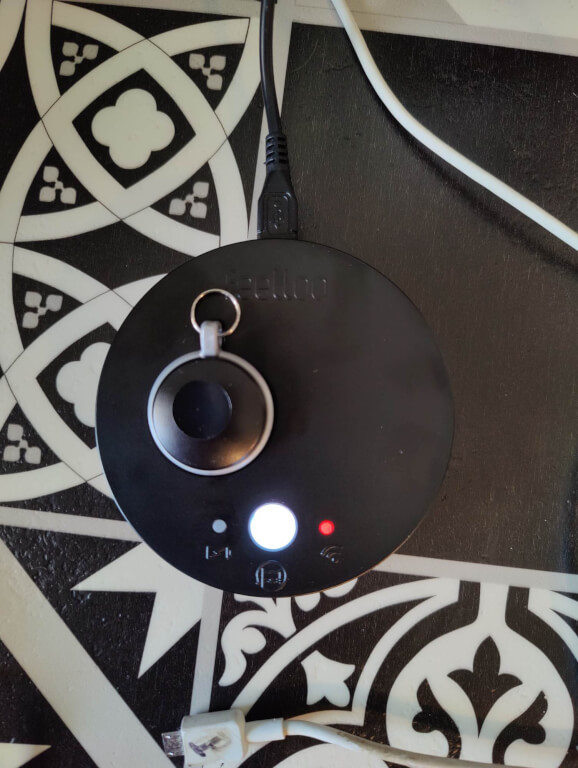Par ailleurs, on accordera au médaillon Feelloo un très bon point pour sa base de recharge qui sert aussi de relaie Wifi. Pratique, élégante et moderne, elle se distingue clairement des autres systèmes de recharge. Il suffit de déposer le médaillon dessus, et celui-ci se rechargera en à peine deux heures. On apprécie ce mode de chargement sans fil.