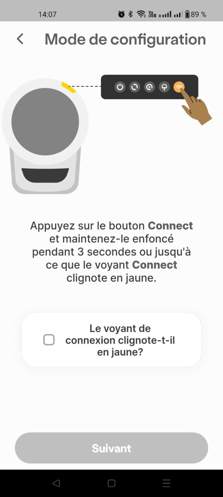 Le système de LED est extremement clair et très bien pensé. A chaque couleur correspond un message. Pratique ! Meme pas besoin d’ouvrir l’app pour savoir ce que « veux » la bête